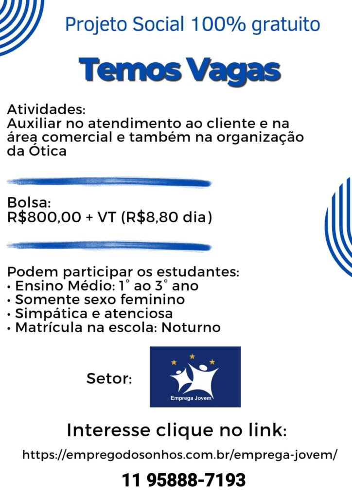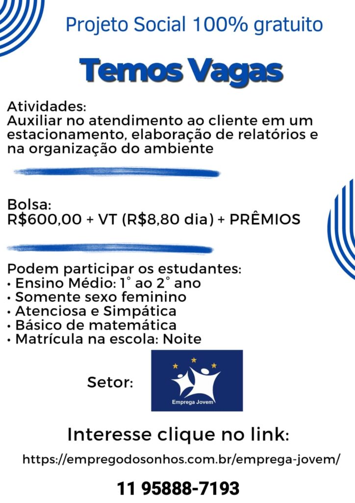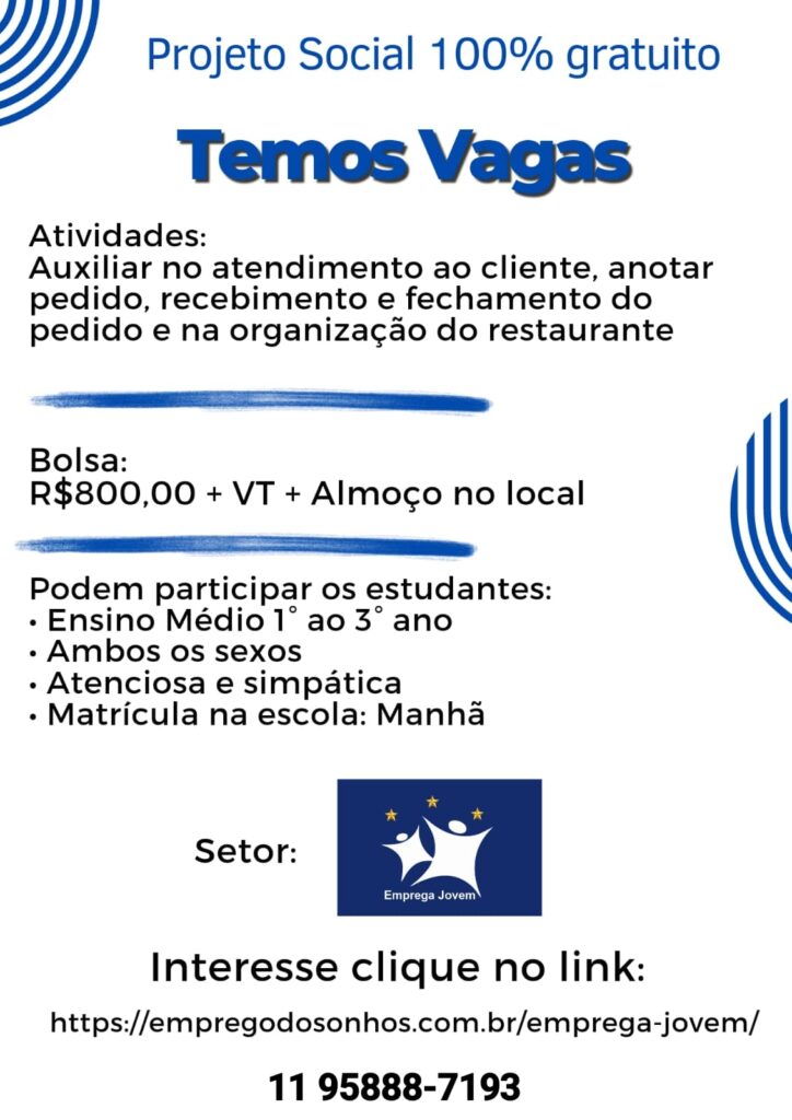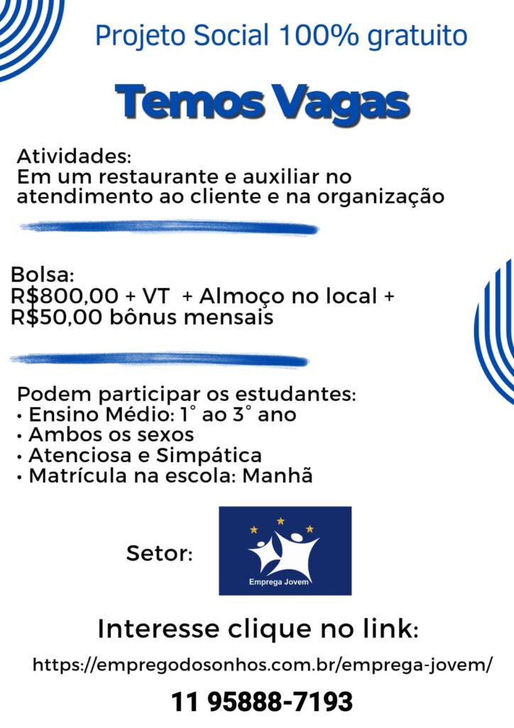 Projeto Social Emprega Jovem Penha – Cangaiba – Ermelino Matarazzo