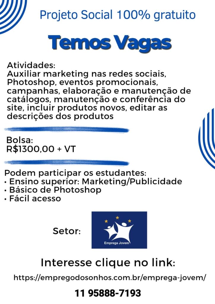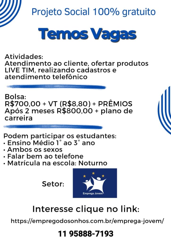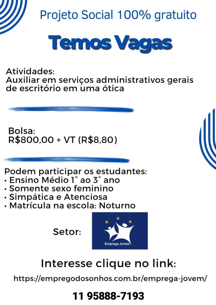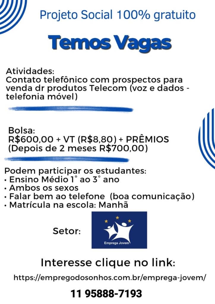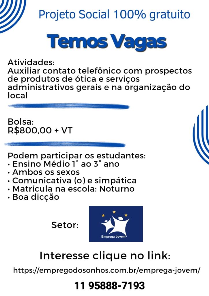Projeto Social Emprega Jovem Penha – Cangaiba – Ermelino Matarazzo
